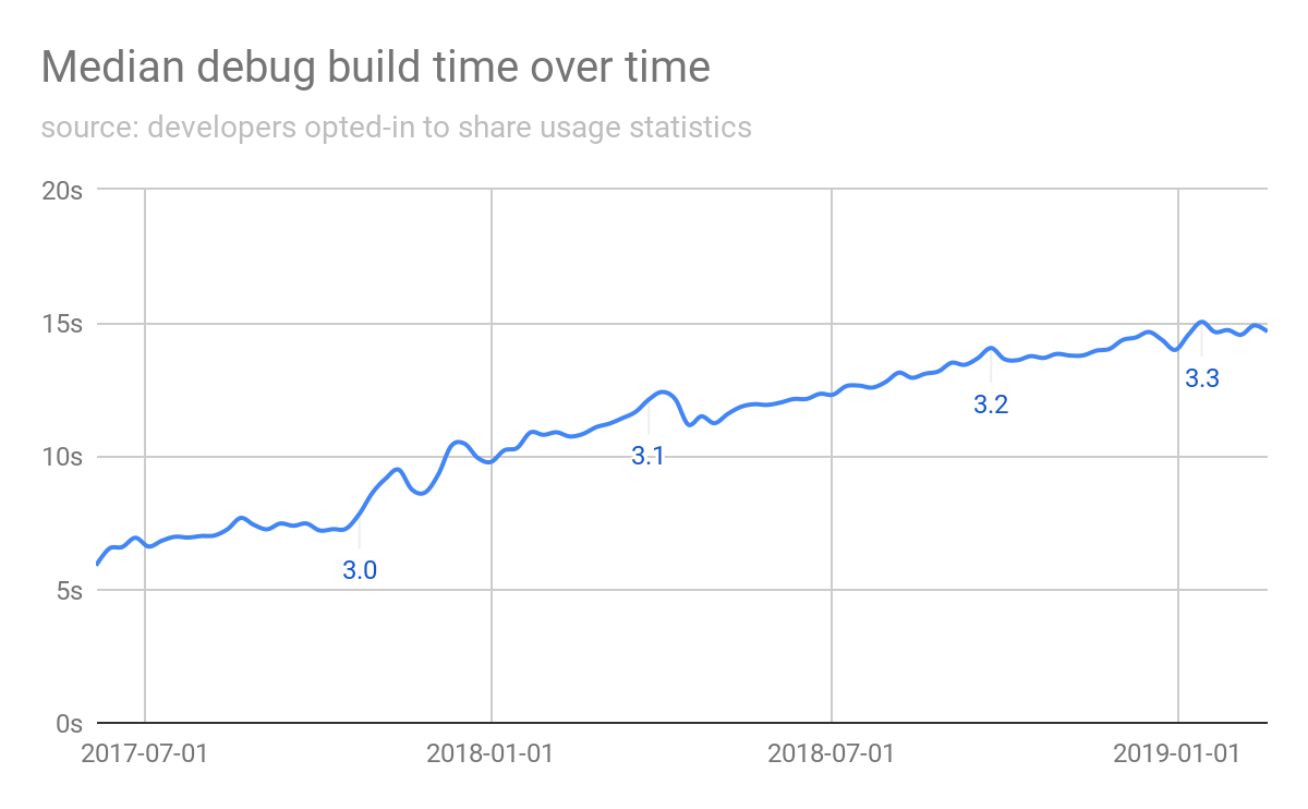 While we knew that project growth — with more code, more resource usage, more language features — was making build slower over time, we also discovered that there are many additional factors beyond our immediate control: