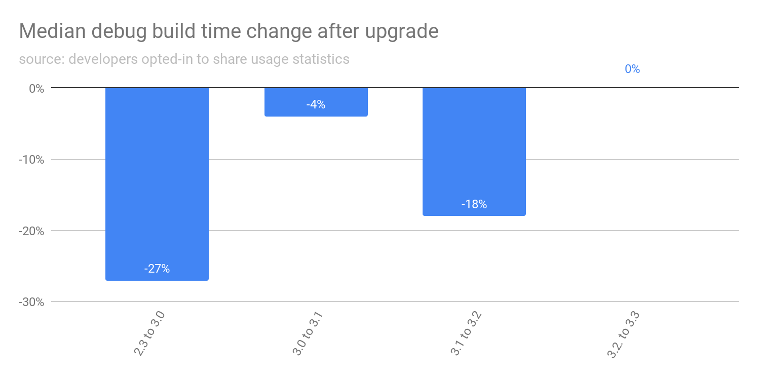 ** 3.3 focused on foundational work for future improvements (eg., namespaced resources, incremental annotation processor enablement, Gradle workers) hence the 0% improvement.